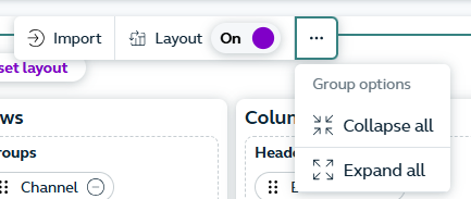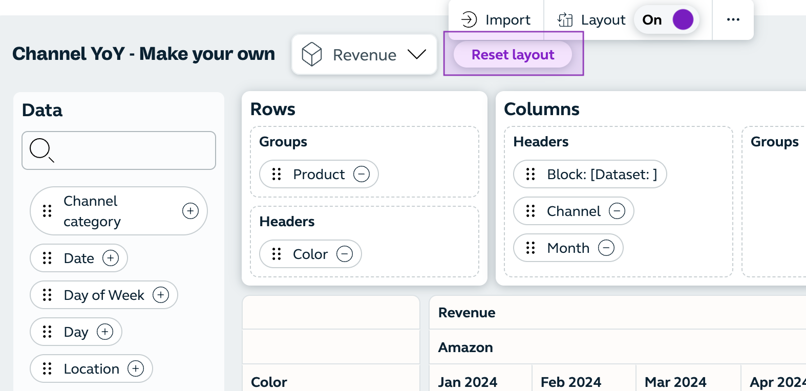 If grouping fails, try different combinations of data placement. Use the Reset layout button at any time to revert the table to the structure it had before layout changes were made.